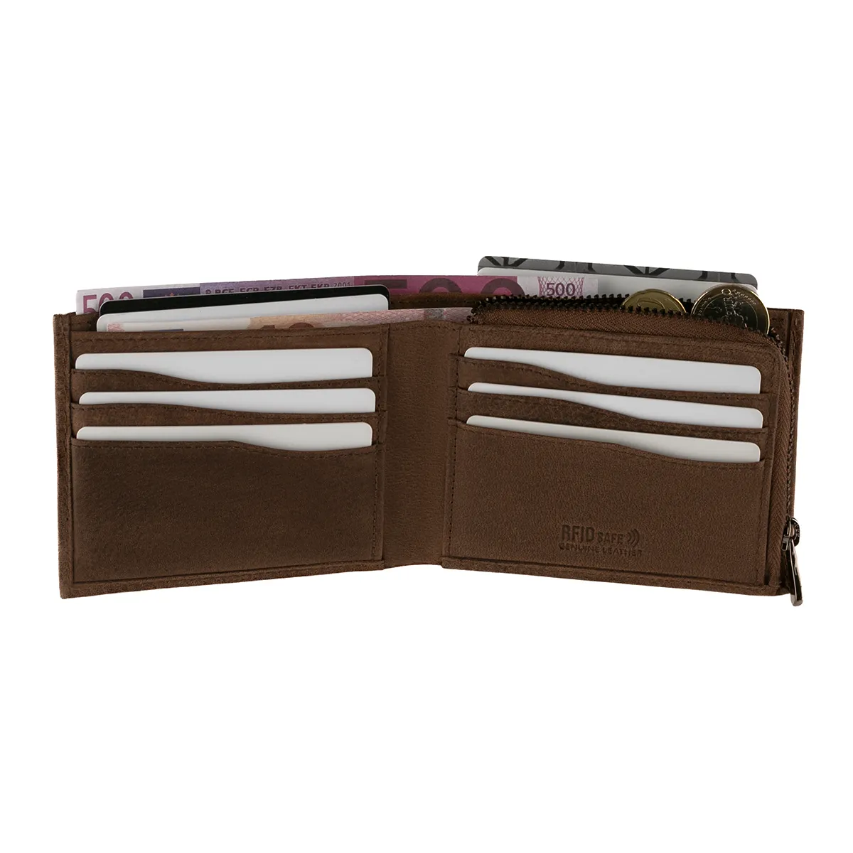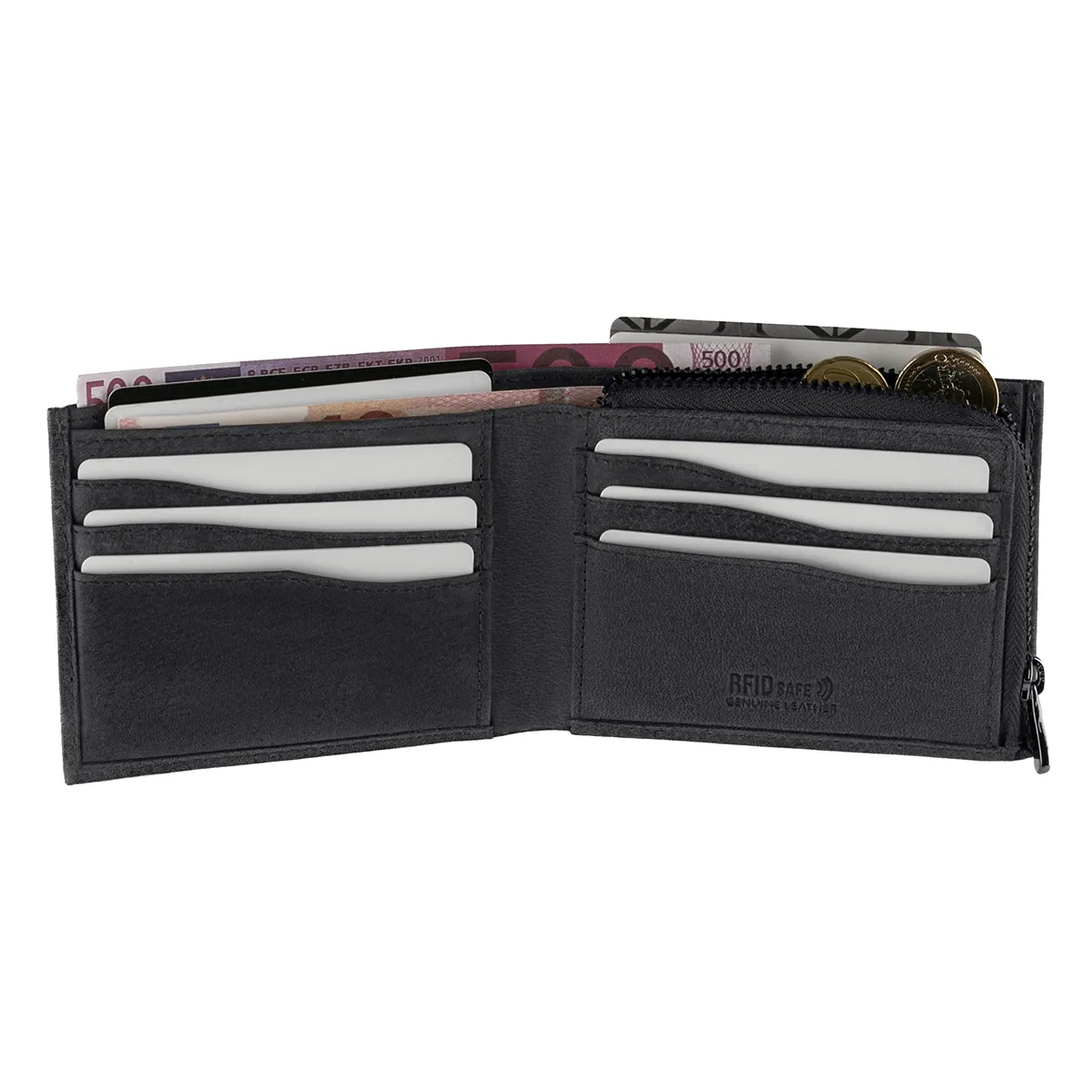 Carteira em Pele par Homem com Porta-moedas e Proteção Anti-RFID.e bloqueio NFC.