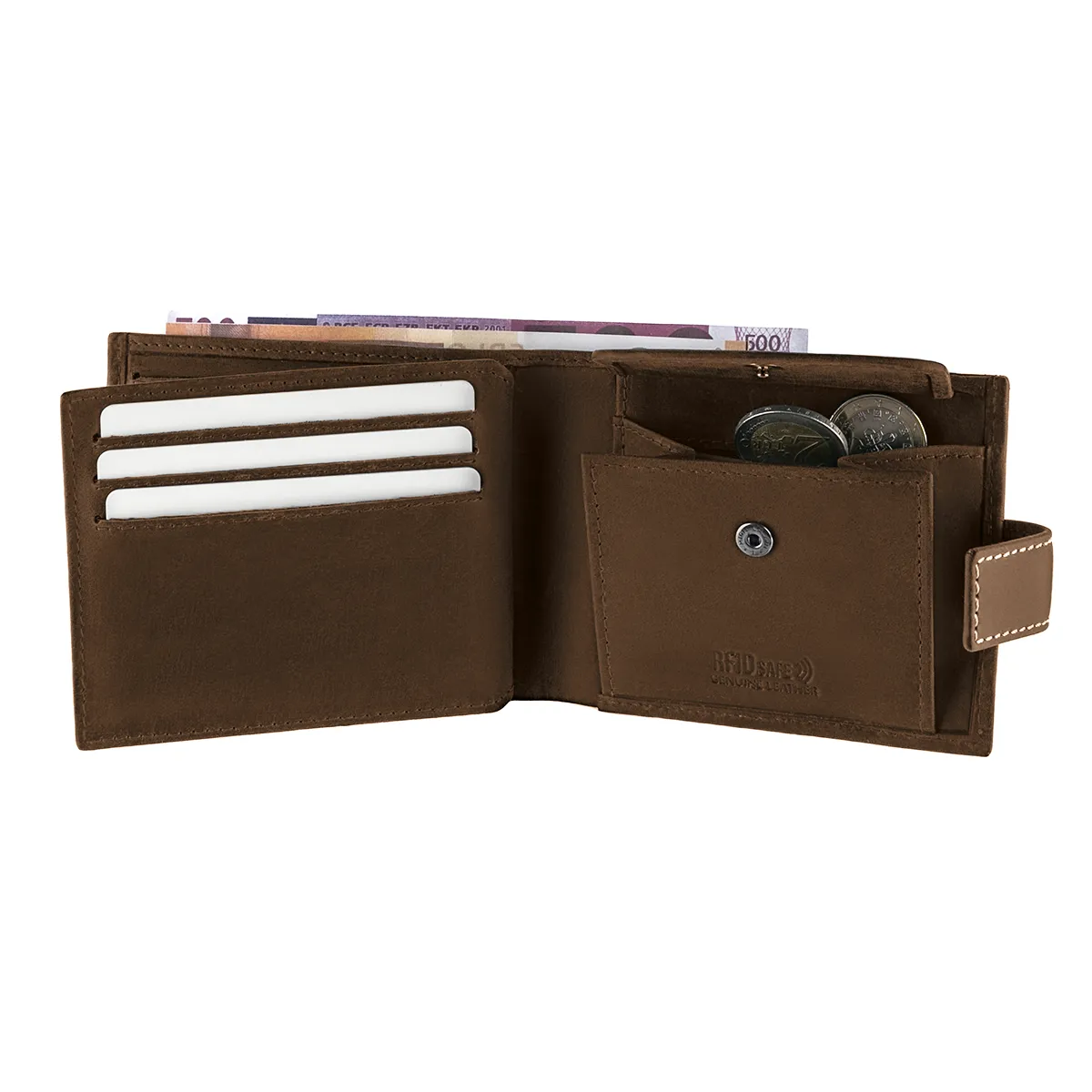 Carteira em Pele para Homem com Porta-moedas e Proteção Anti-RFID