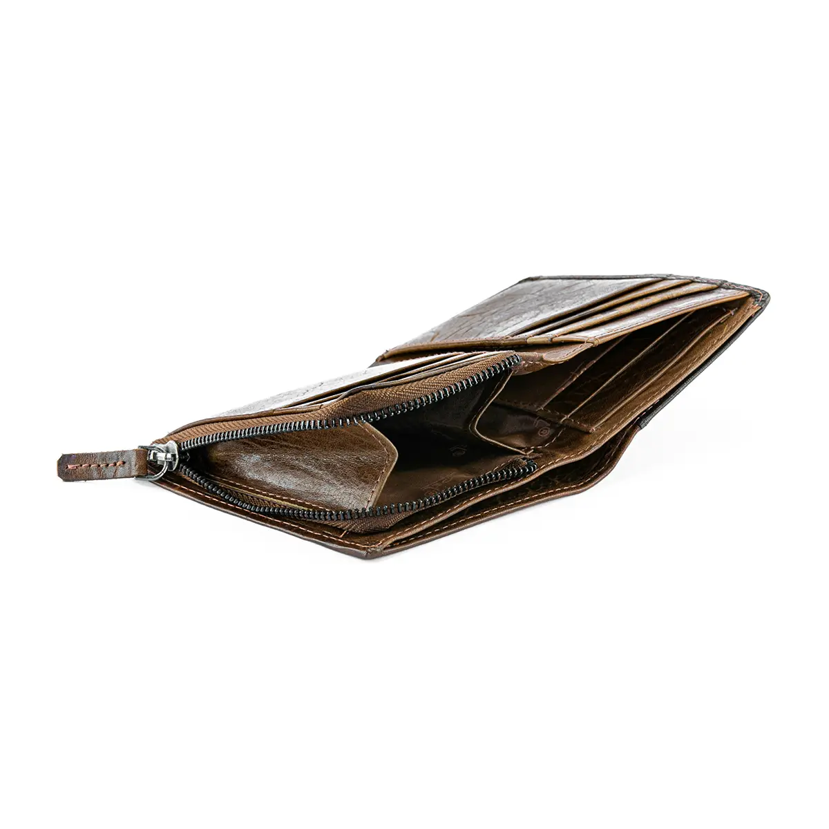 Carteira pequena com proteção anti-RFID e bloqueio NFC. Contém 1 compartimento para notas, 9 compartimentos para cartões (tipo crédito), 3 compartimentos multiusos e porta-moedas com fecho ecler. Coleção Harmonia.